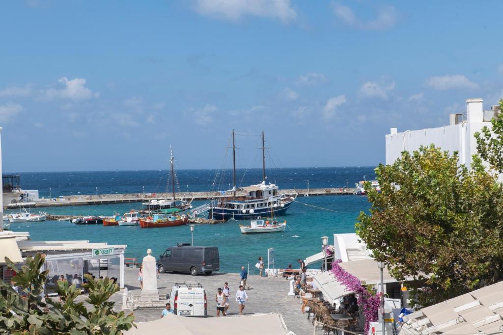 Appartamento situato nella città di mykonos nella zona di yalo yalo al porto vecchio,la suite dispone di una terrazza panoramica direttamente sul porto vecchio e sul mare, Wi-Fi e servizio concierge.
